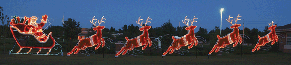 Santa & Sleigh - Santa waves and reindeer's legs appear to move in a leaping motion.